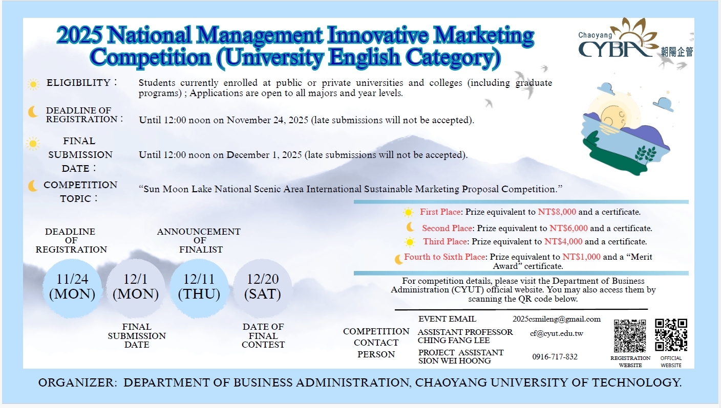 Organizer: Organized by the Department of Business Administration, Chaoyang University of Technology.