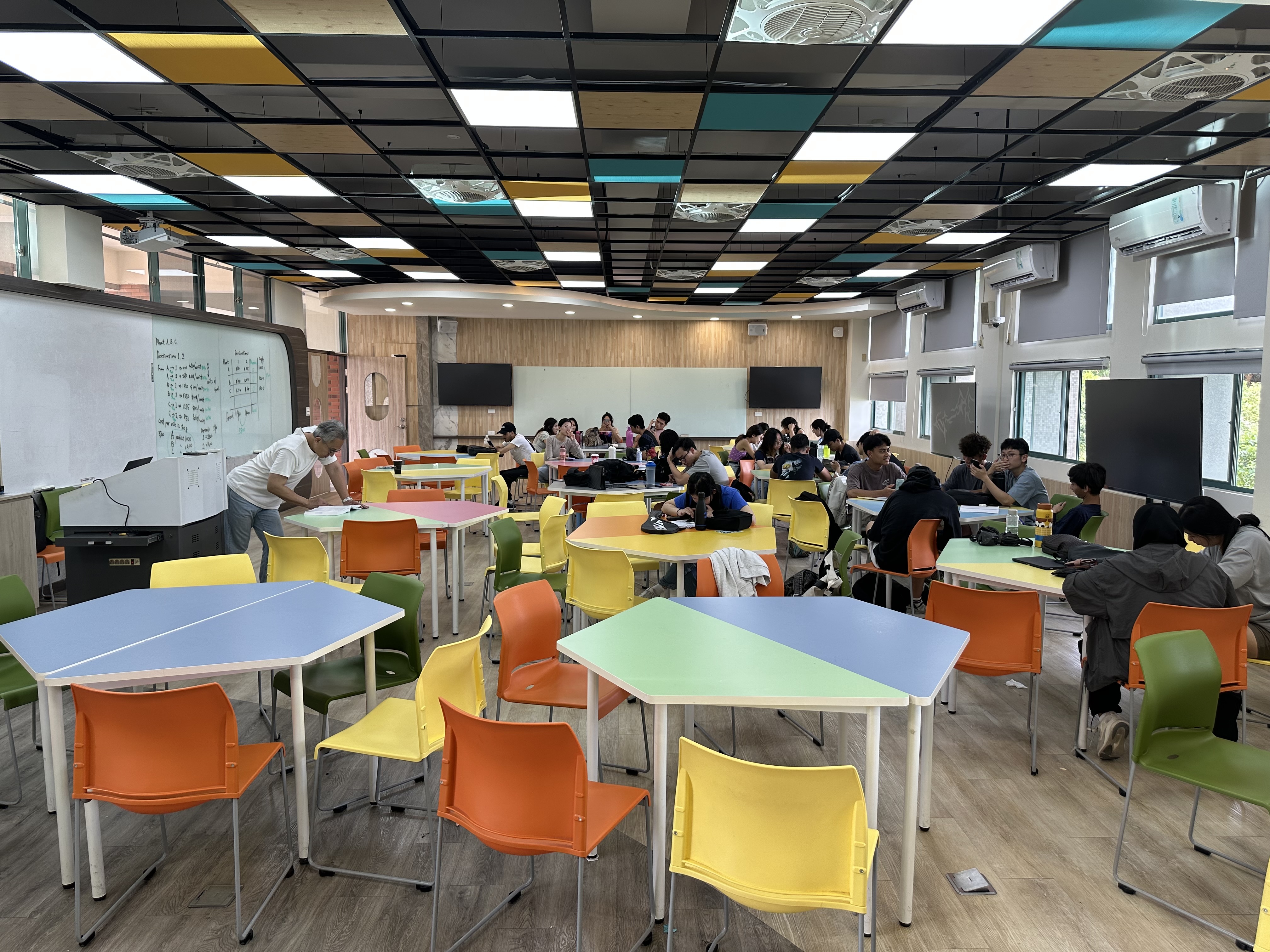 This classroom is designed to foster collaboration, discussion, and flexible learning. Equipped with colorful, movable chairs and round-edge tables, the space accommodates a variety of teaching styles—from lectures to group activities. The open layout encourages teamwork and student engagement.